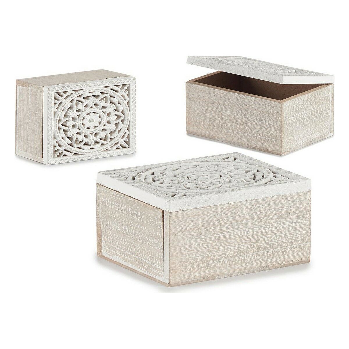 Juego de Cajas Decorativas Blanco Natural Madera de Paulonia 44 x 31 x 18 cm (3 Piezas)