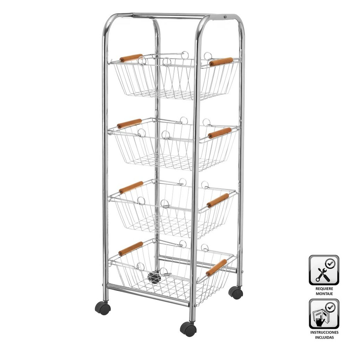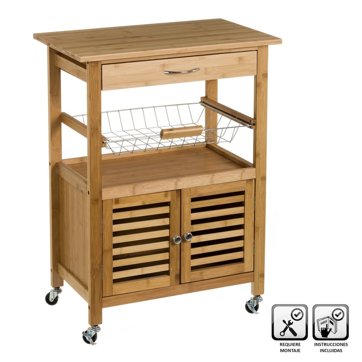 Carrito Verdulero Natural Metal Bambú 60 x 36 x 80 cm