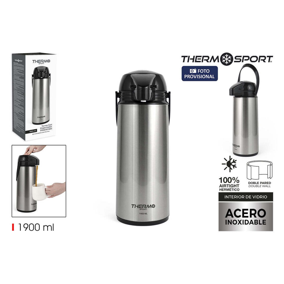 Jarra Termo ThermoSport Plateado 1,9 L (6 Unidades)