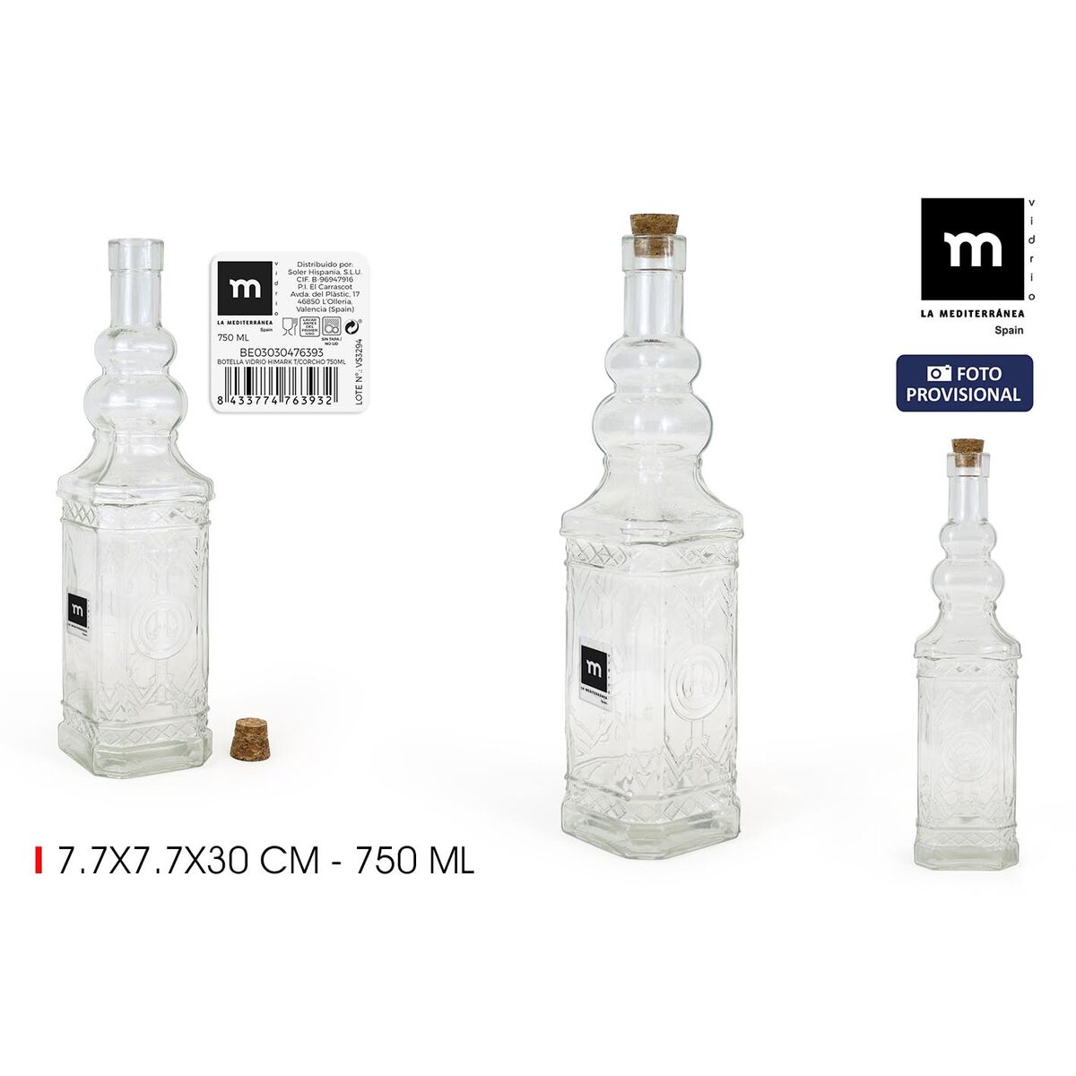 Botella de Cristal La Mediterránea Vidrio 750 ml (24 Unidades)