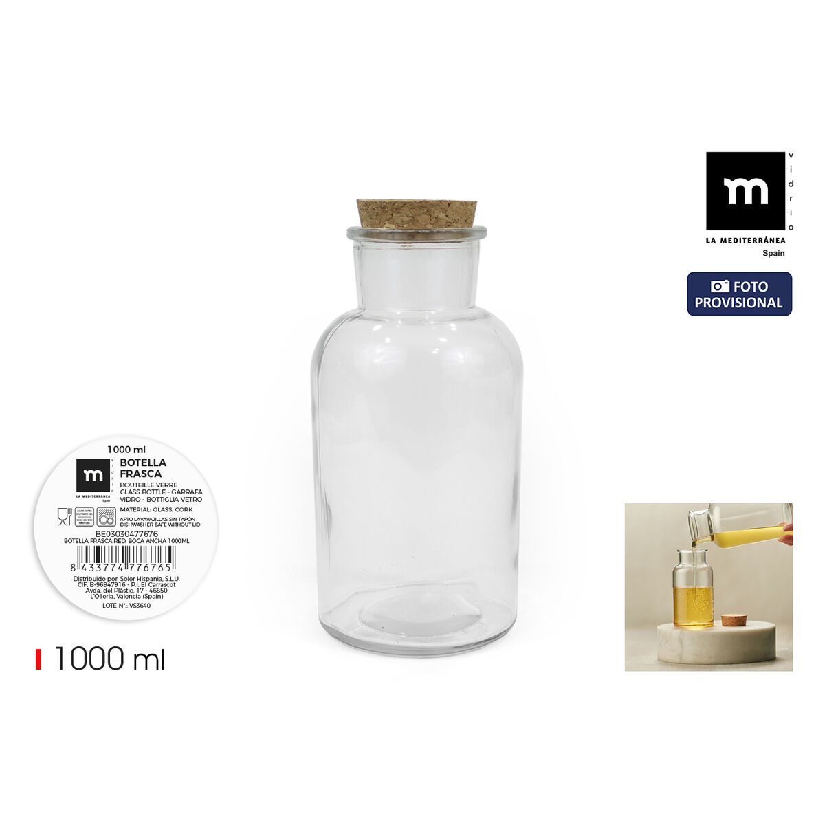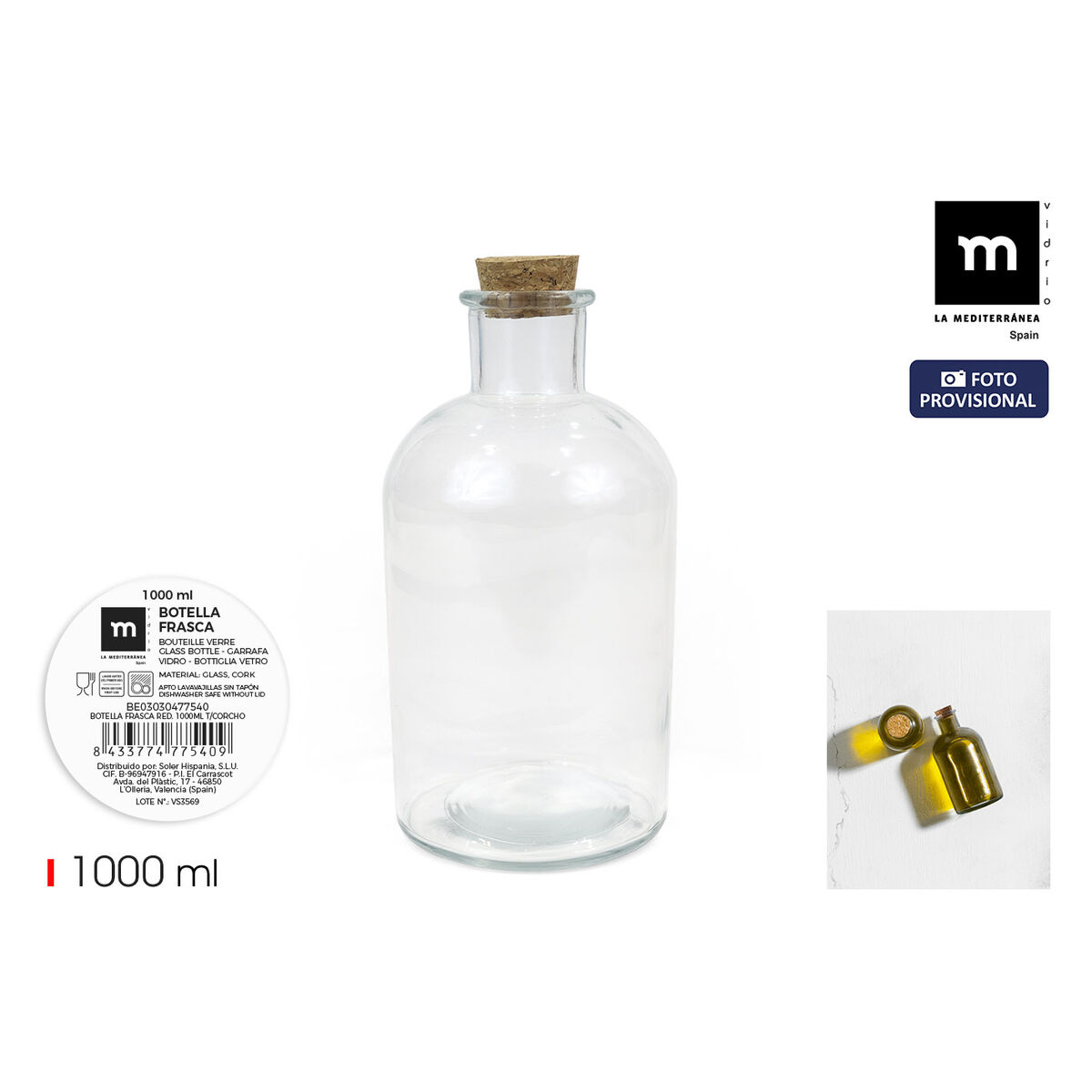 Botella de Cristal La Mediterránea 1 L (12 Unidades)