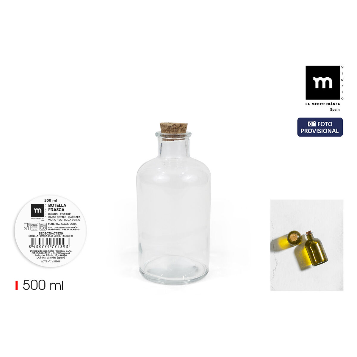 Botella de Cristal La Mediterránea 500 ml 0,5 L (24 Unidades)