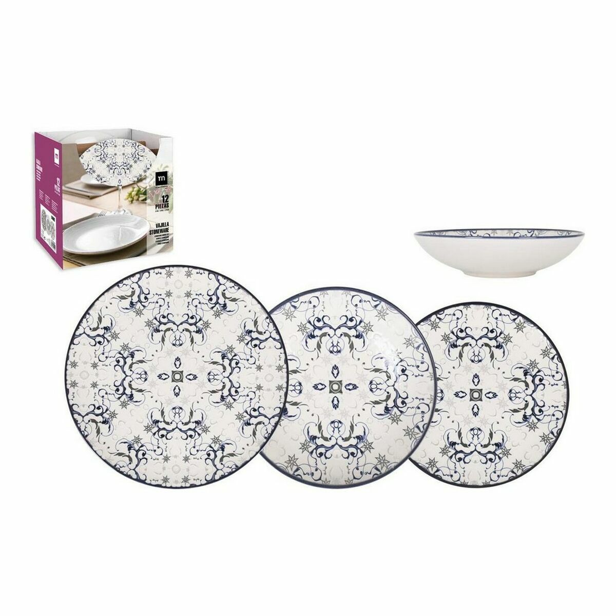Set de Vajilla La Mediterránea Marvin Redonda 12 Piezas (2 Unidades)