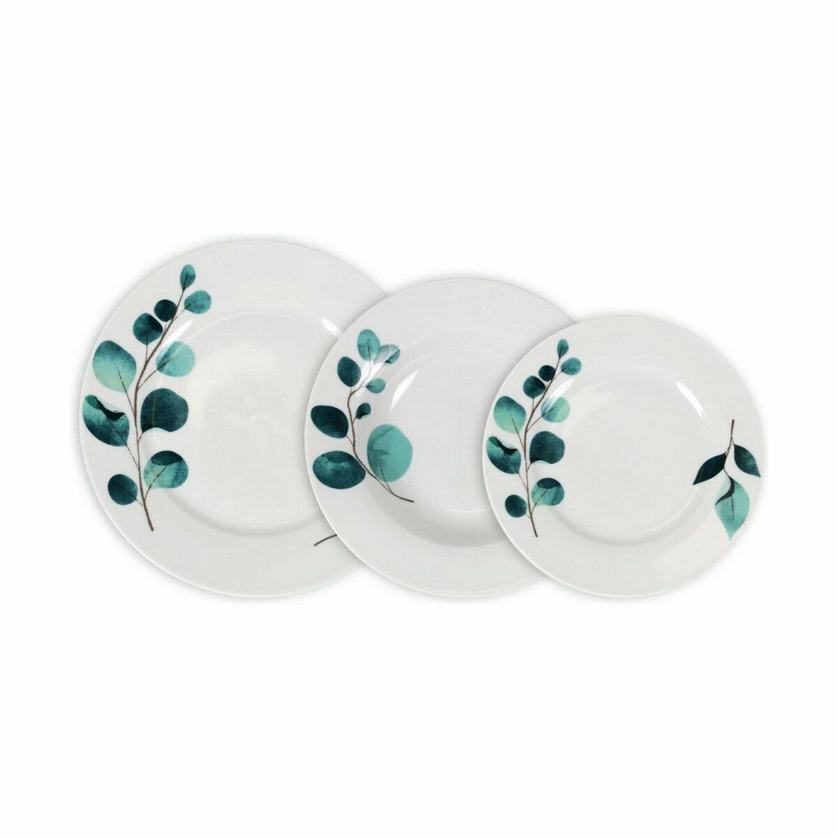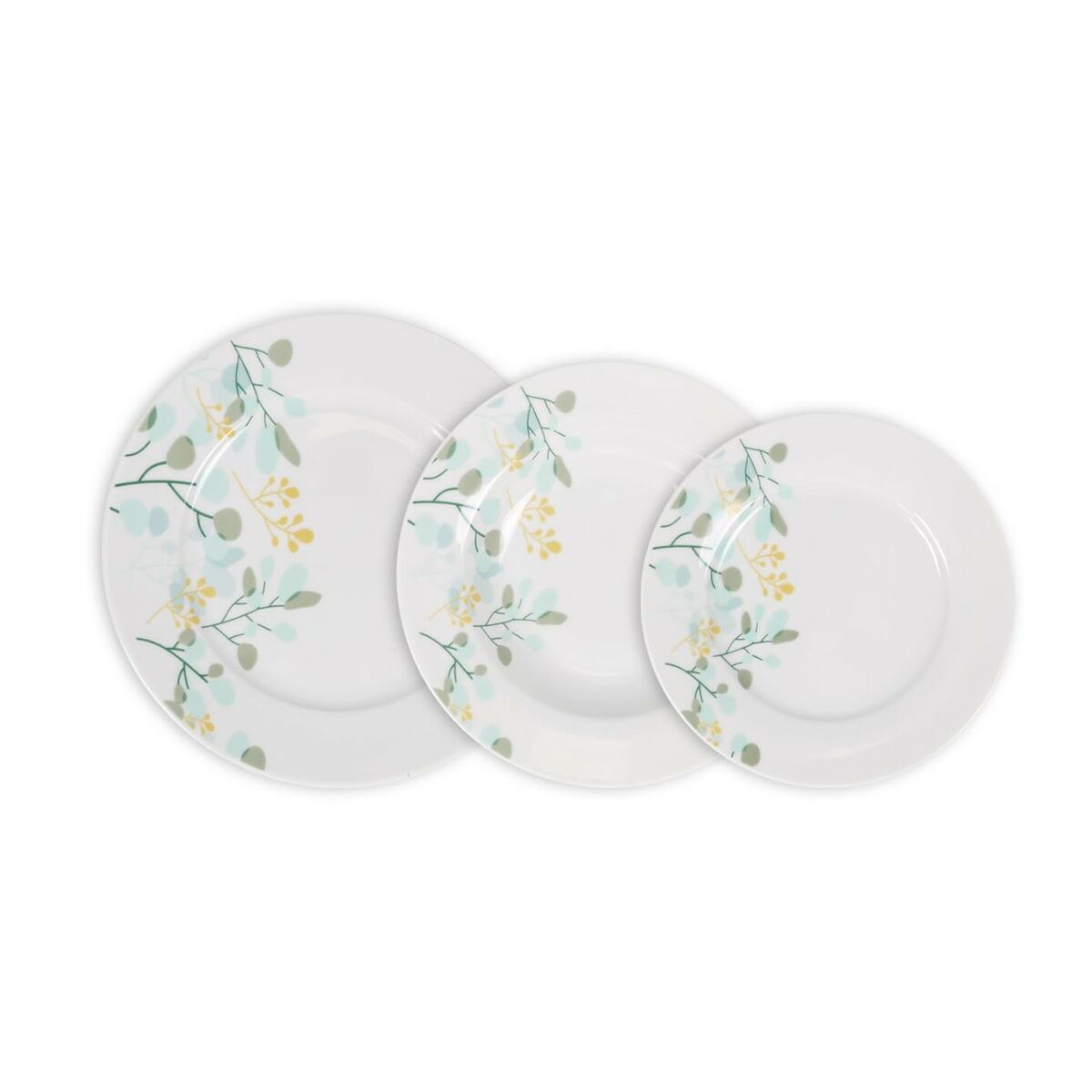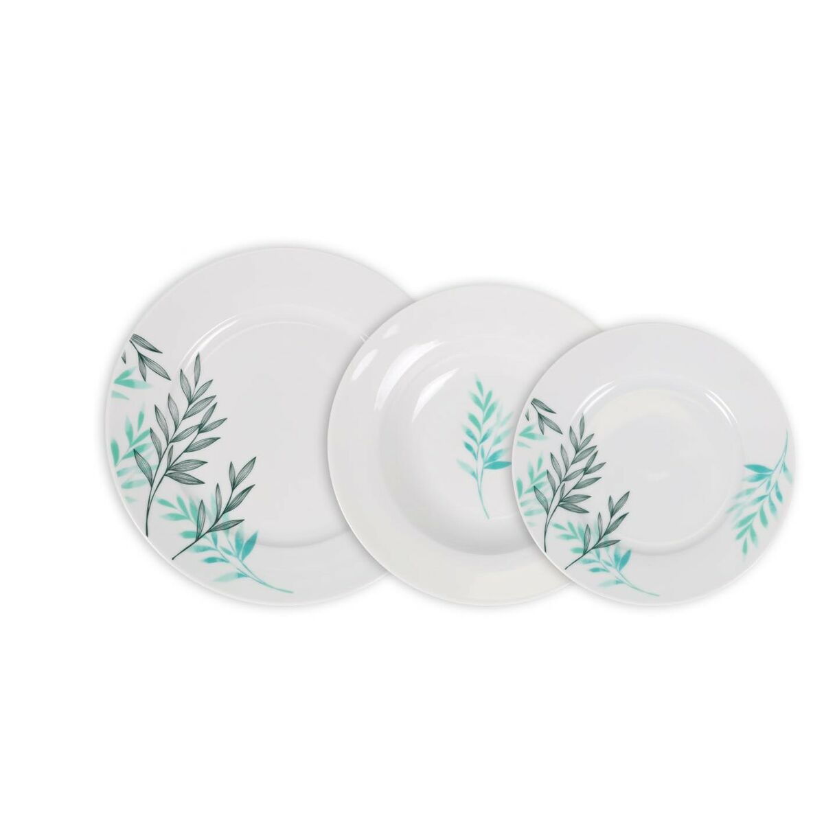 Vajilla DKD Home Decor Blanco Verde Porcelana Hoja de planta Navidad 27 x 27 x 2 cm 18 Piezas