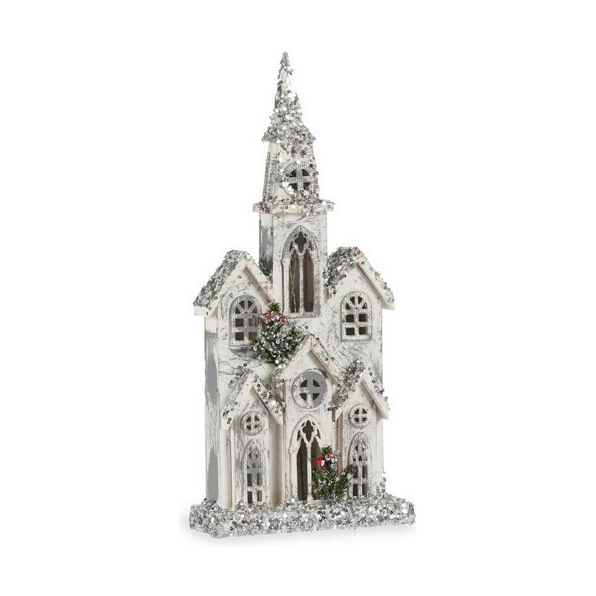 Figura Decorativa Krist+ Blanco Gris Purpurina Casa Navidad 25,5 x 56,5 x 9,5 cm Luz LED
