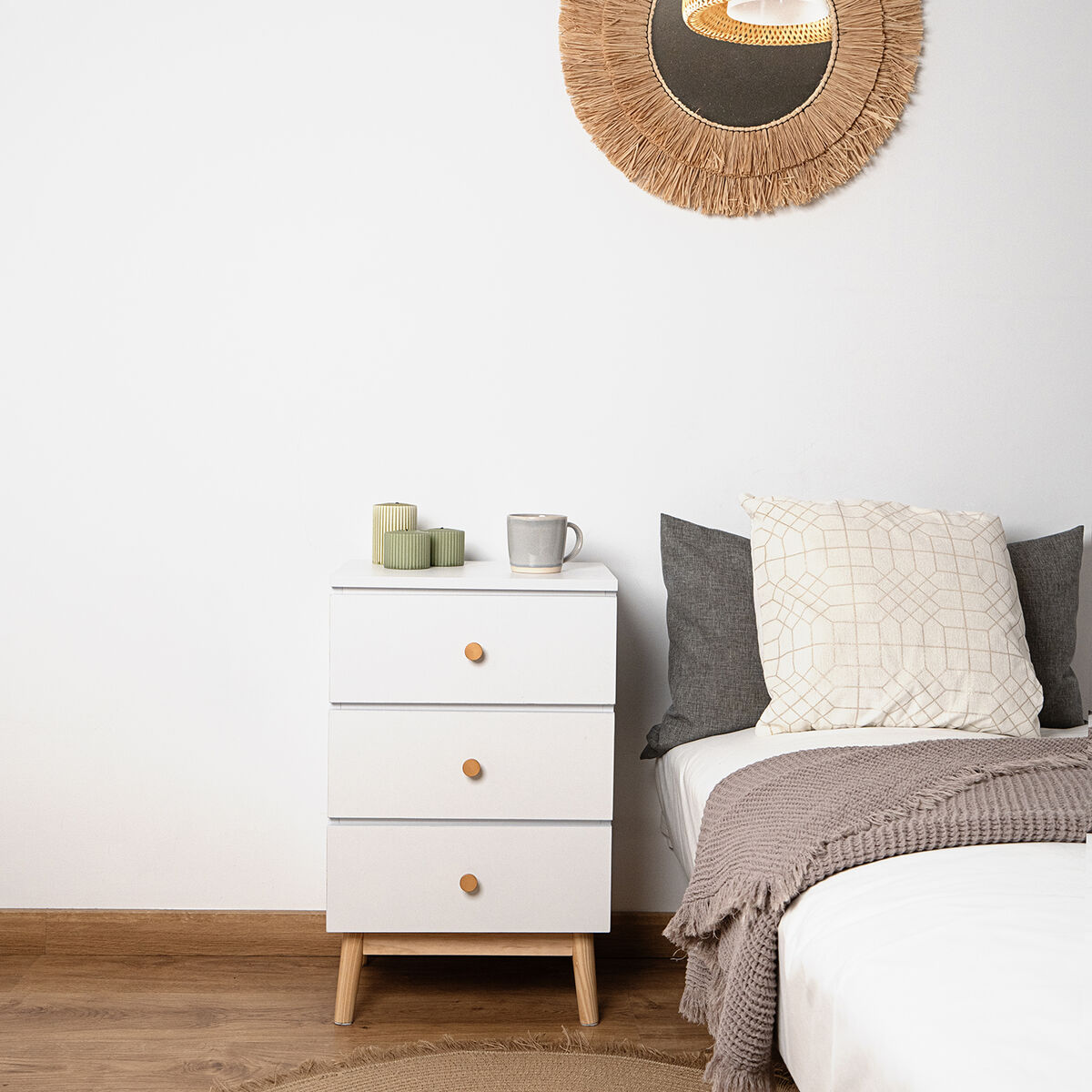 Mesita de Noche ORIENTE Blanco Madera MDF 50 x 40 x 66 cm