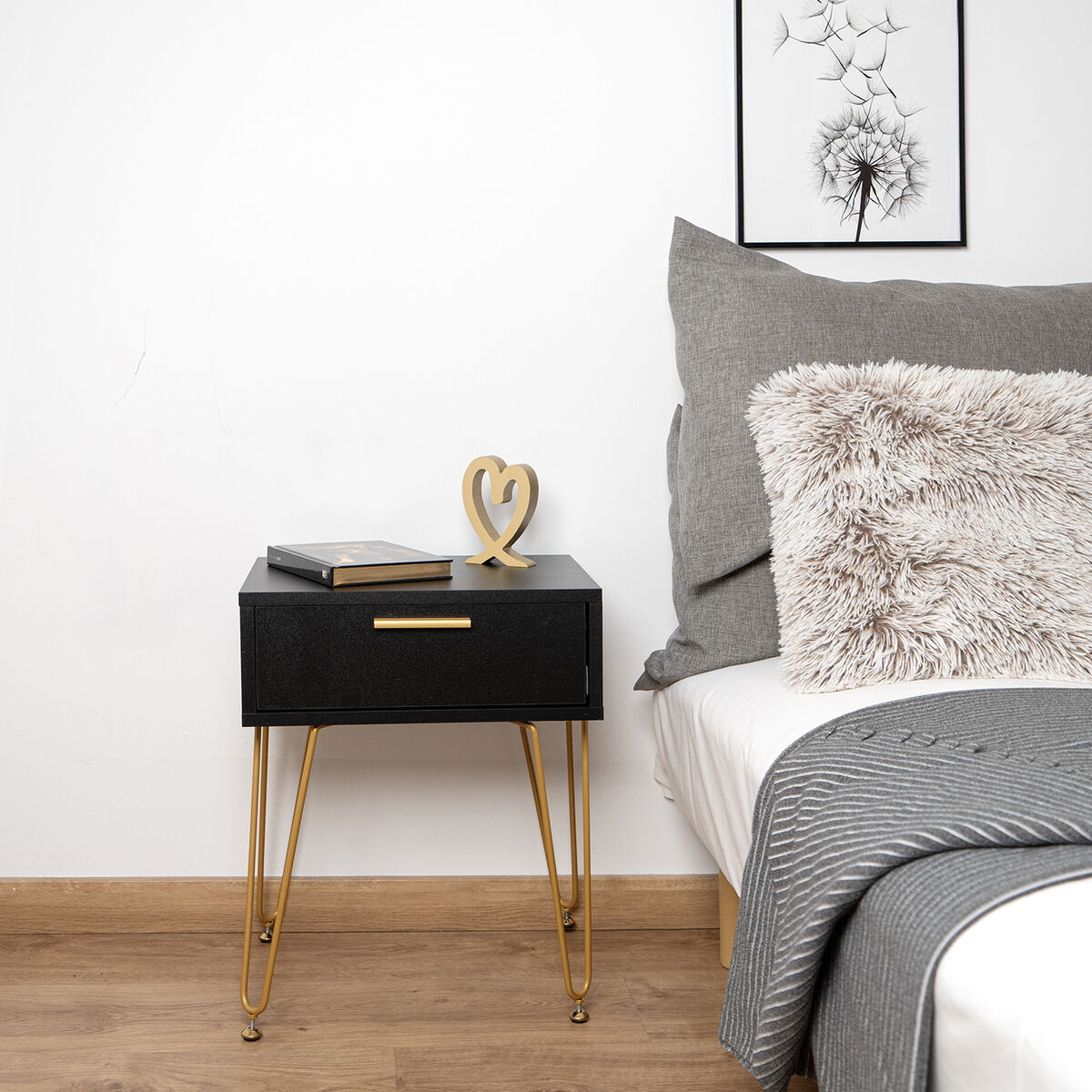 Mesita de Noche Alexandra House Living Negro Dorado