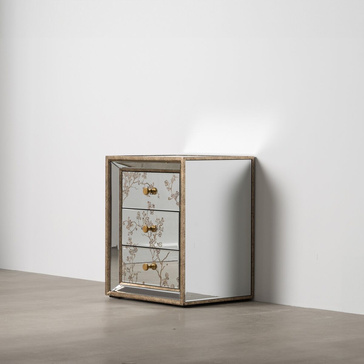 Mesita de Noche CHLOE Dorado Espejo Cristal Madera MDF 49 x 40 x 60 cm