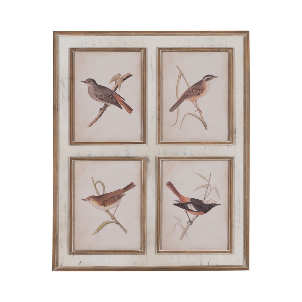 Lienzo Home ESPRIT Blanco Beige Gris Dorado Pájaros Escandinavo 103 x 4,5 x 143 cm (2 Unidades)