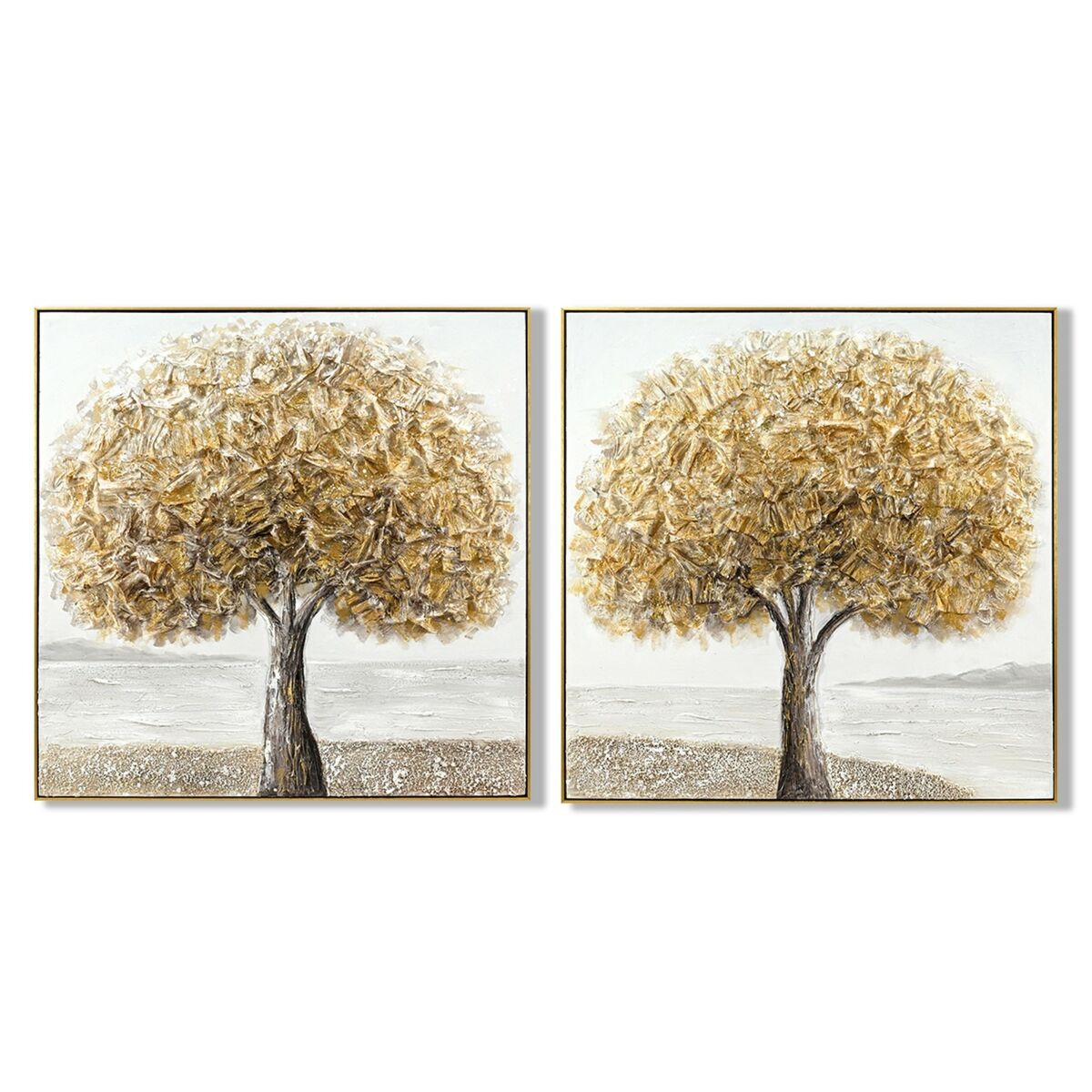 Lienzo Home ESPRIT Gris Dorado Árbol Tradicional 102 x 4,5 x 102 cm (2 Unidades)