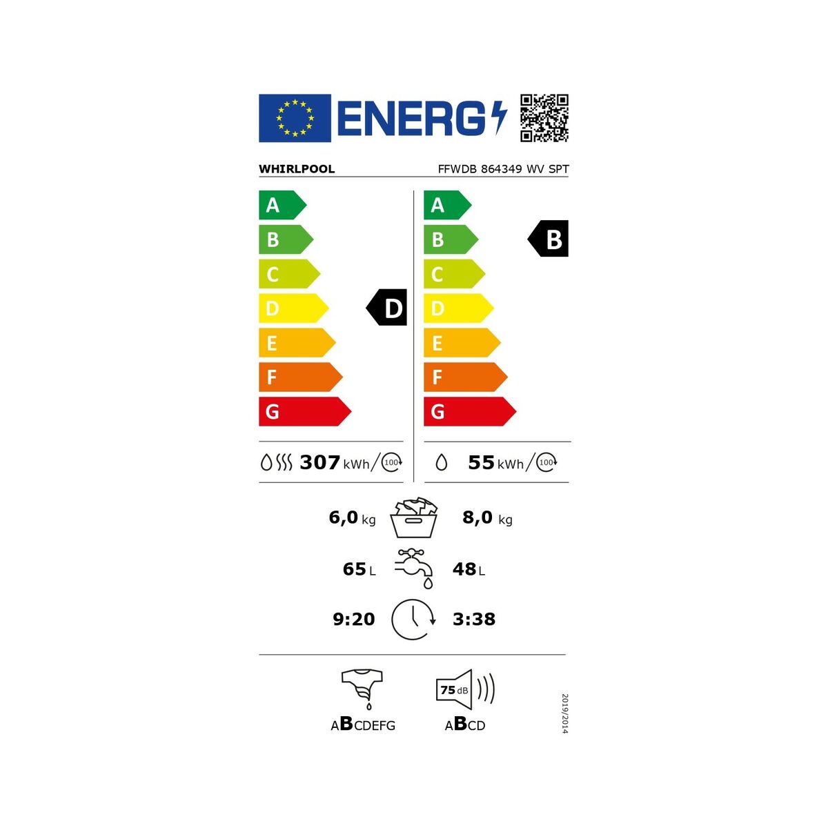Lavadora - Secadora Whirlpool Corporation FFWDB864349WVSP 1400 rpm