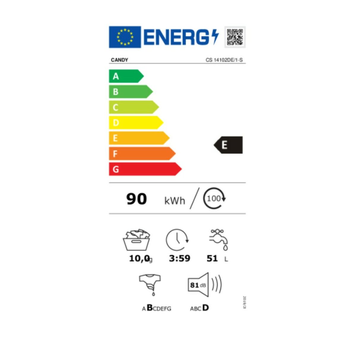 Lavadora Candy CS 14102DE / 1-S 60 cm 1400 rpm 10 kg