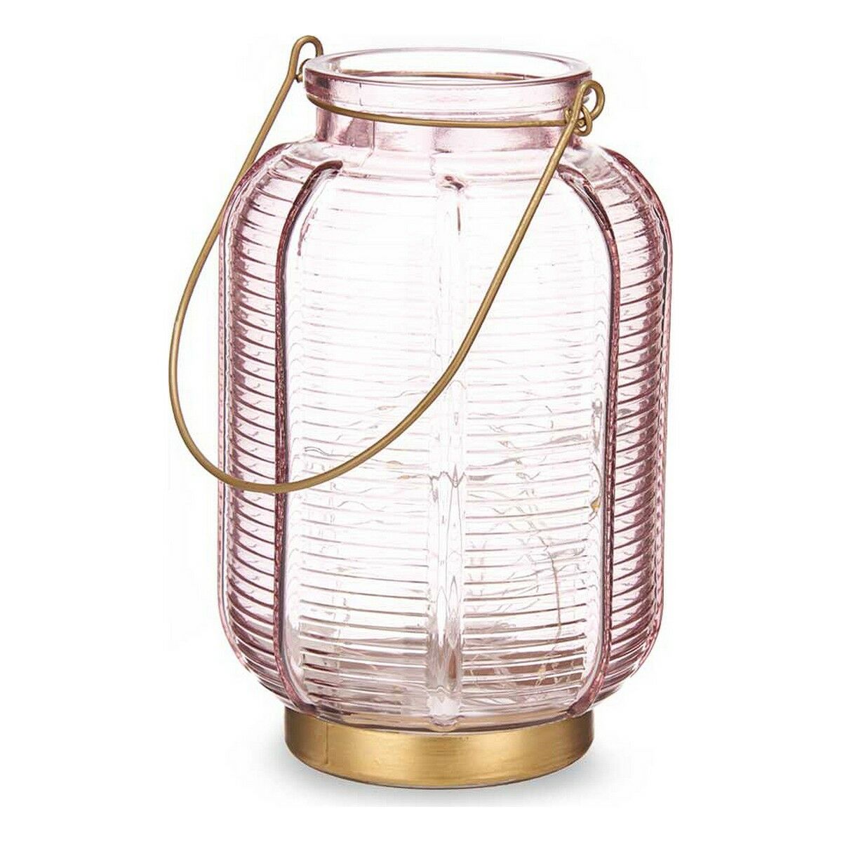 Farol LED Gift Decor Rosa Dorado Vidrio Rayas 13,5 x 22 x 13,5 cm