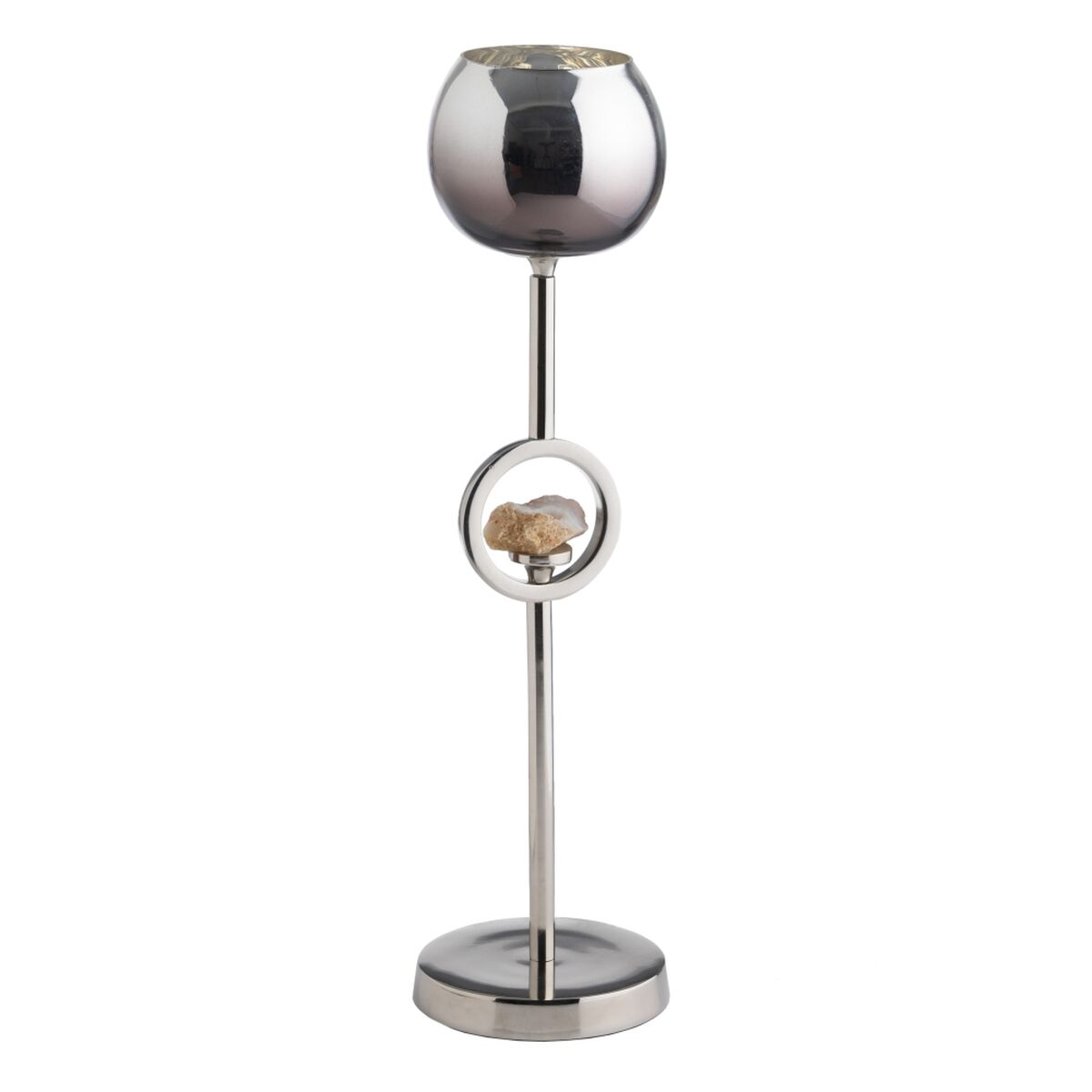 Portavelas Plateado Aluminio Cristal 11 x 11 x 44 cm