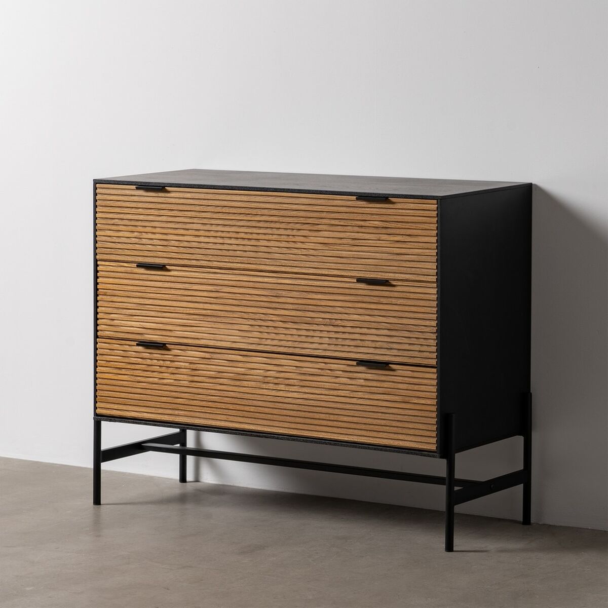 Cajonera ORLEANS Negro Natural Hierro Madera MDF 104 x 40 x 81,5 cm