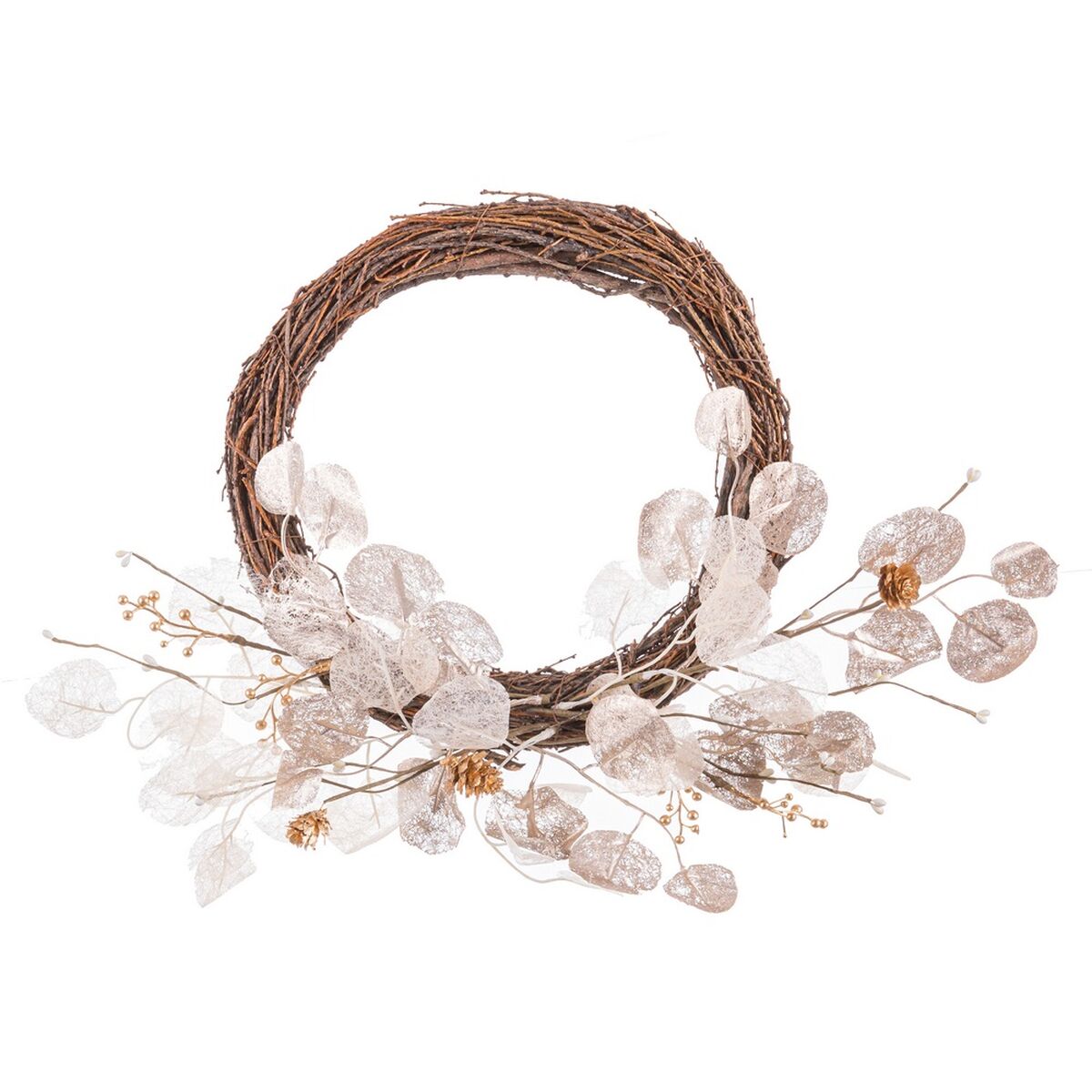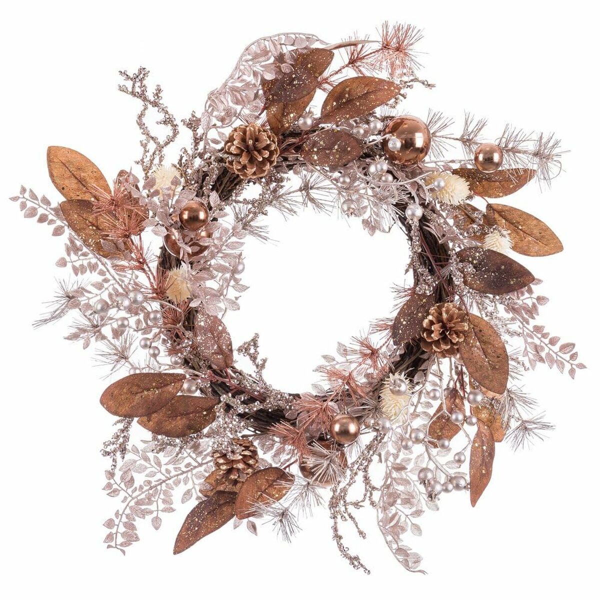 Corona de Navidad Cobre Ratán Plástico Piñas 45 cm