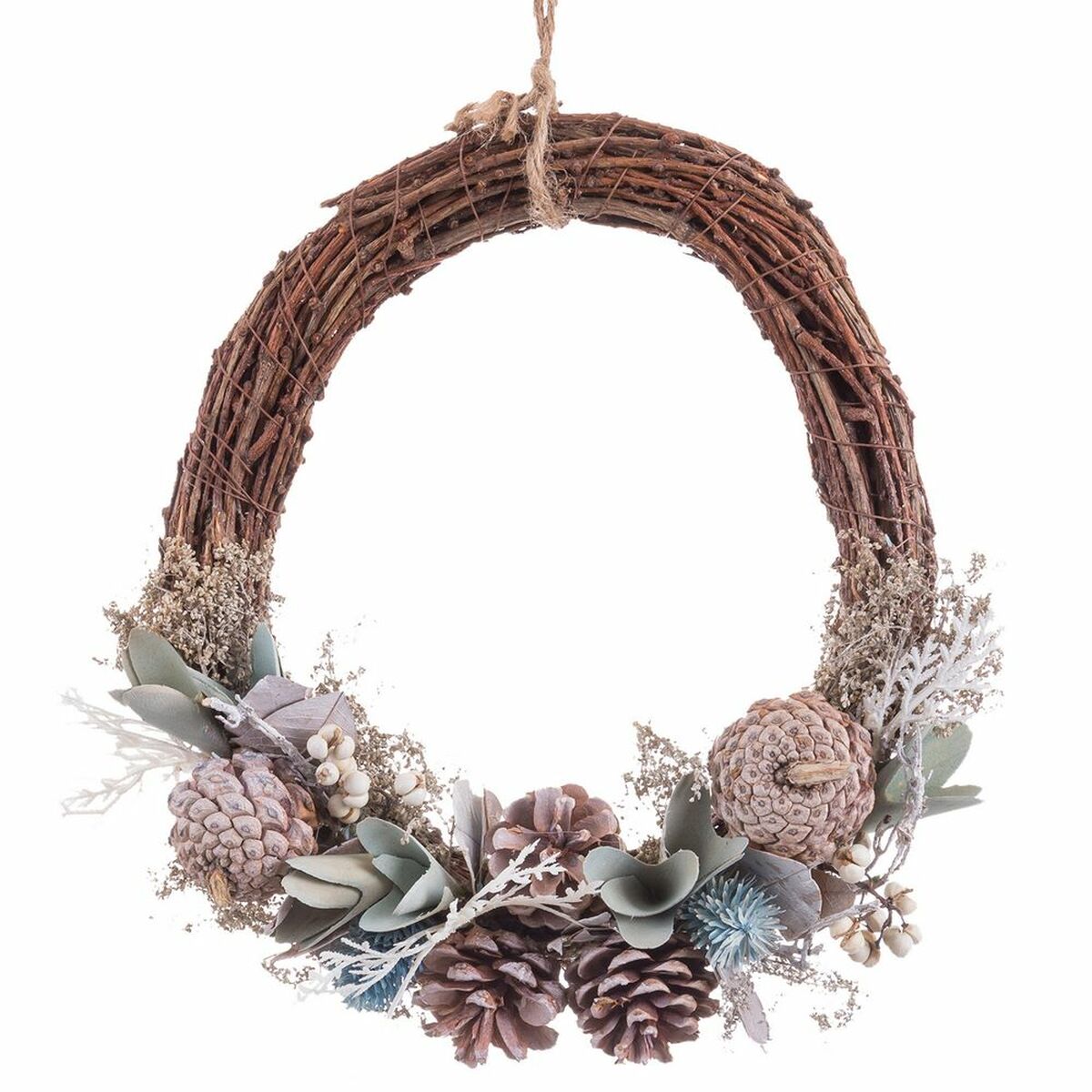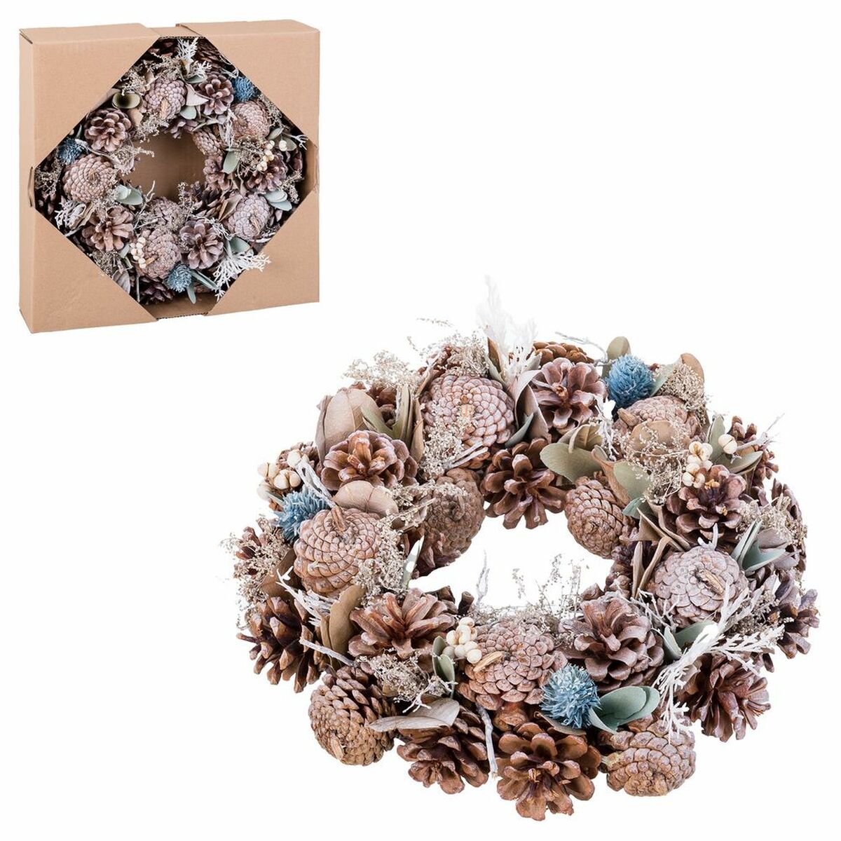 Corona de Navidad Azul Blanco Piñas 28 X 8 X 29 CM