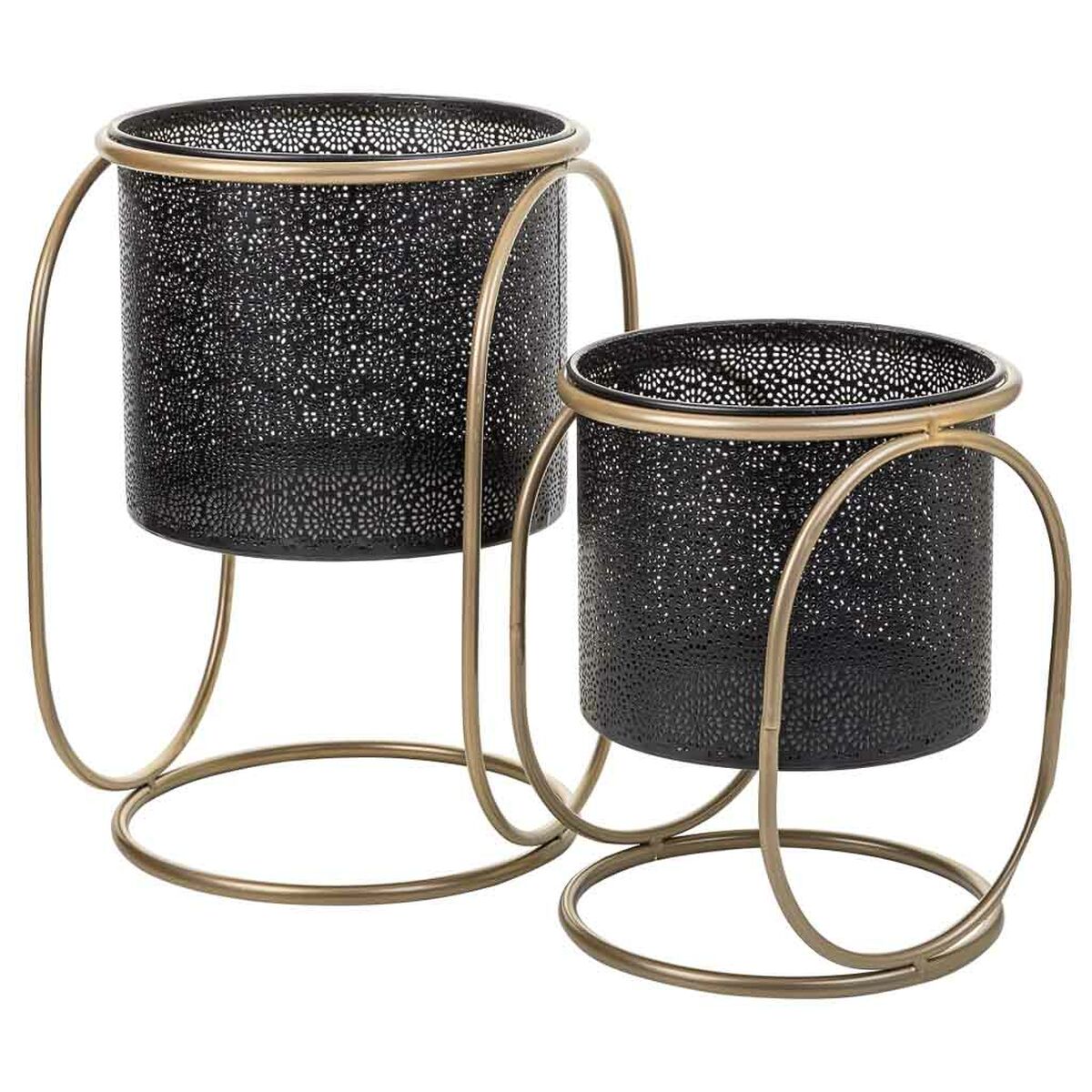Set de Maceteros Alexandra House Living Negro Metal Hierro 26 x 68 x 80 cm 2 Piezas