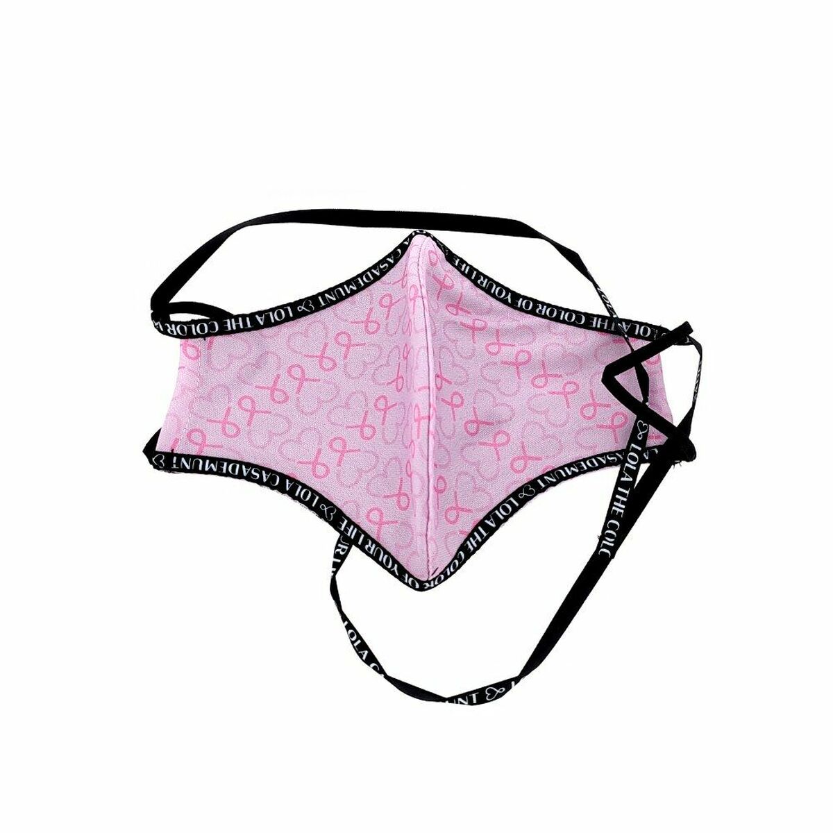 Mascarilla Higiénica de Tela Reutilizable Lola Casademunt Negro Rosa Corazones