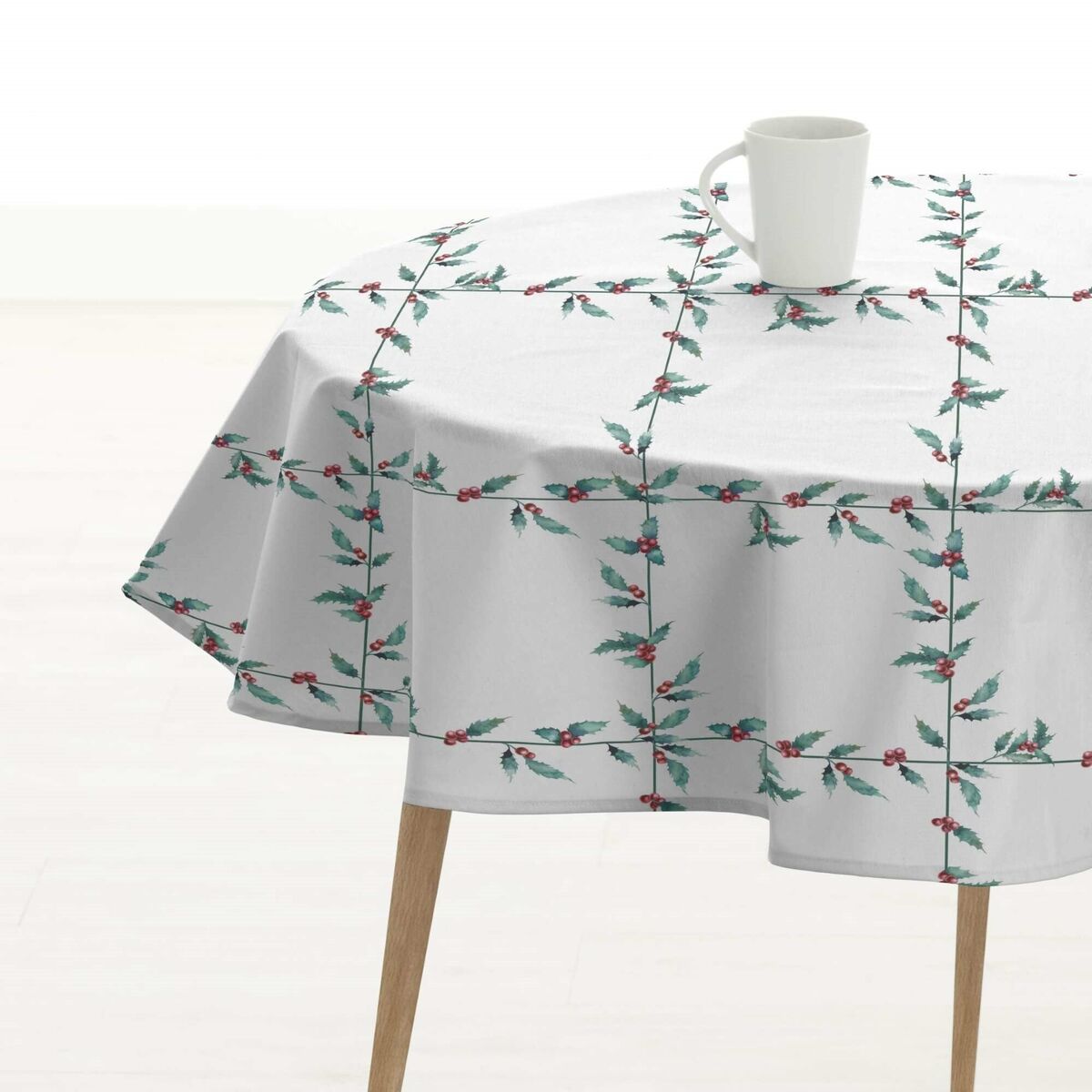 Mantel resinado antimanchas Belum Christmas Blanco Rojo 150 x 150 cm
