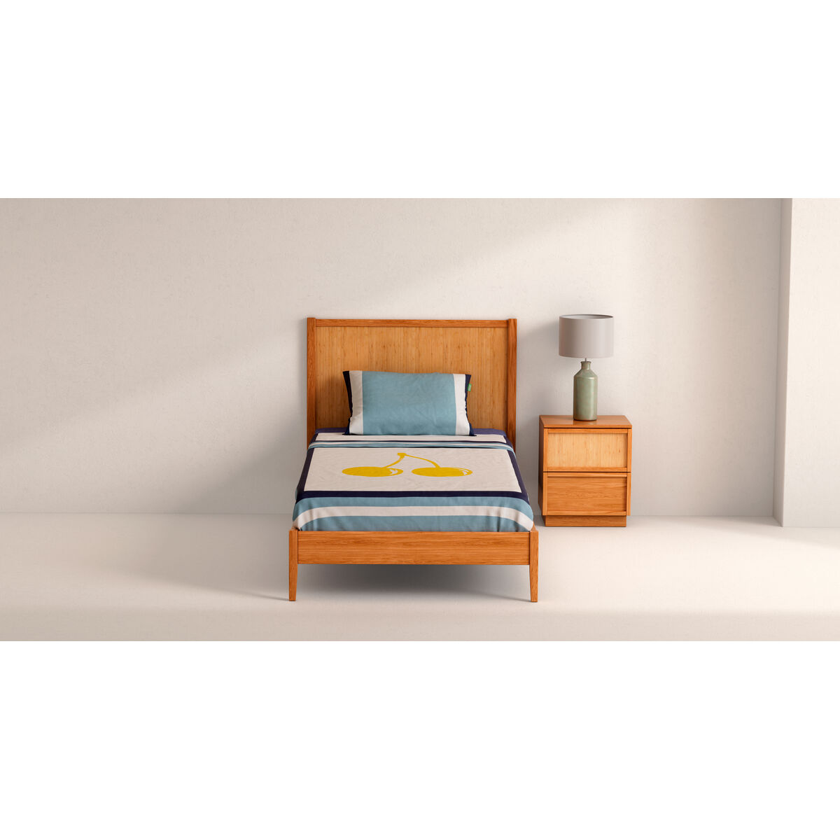 Juego de Sábanas Benetton Amarillo Azul Cerezas 3 Piezas