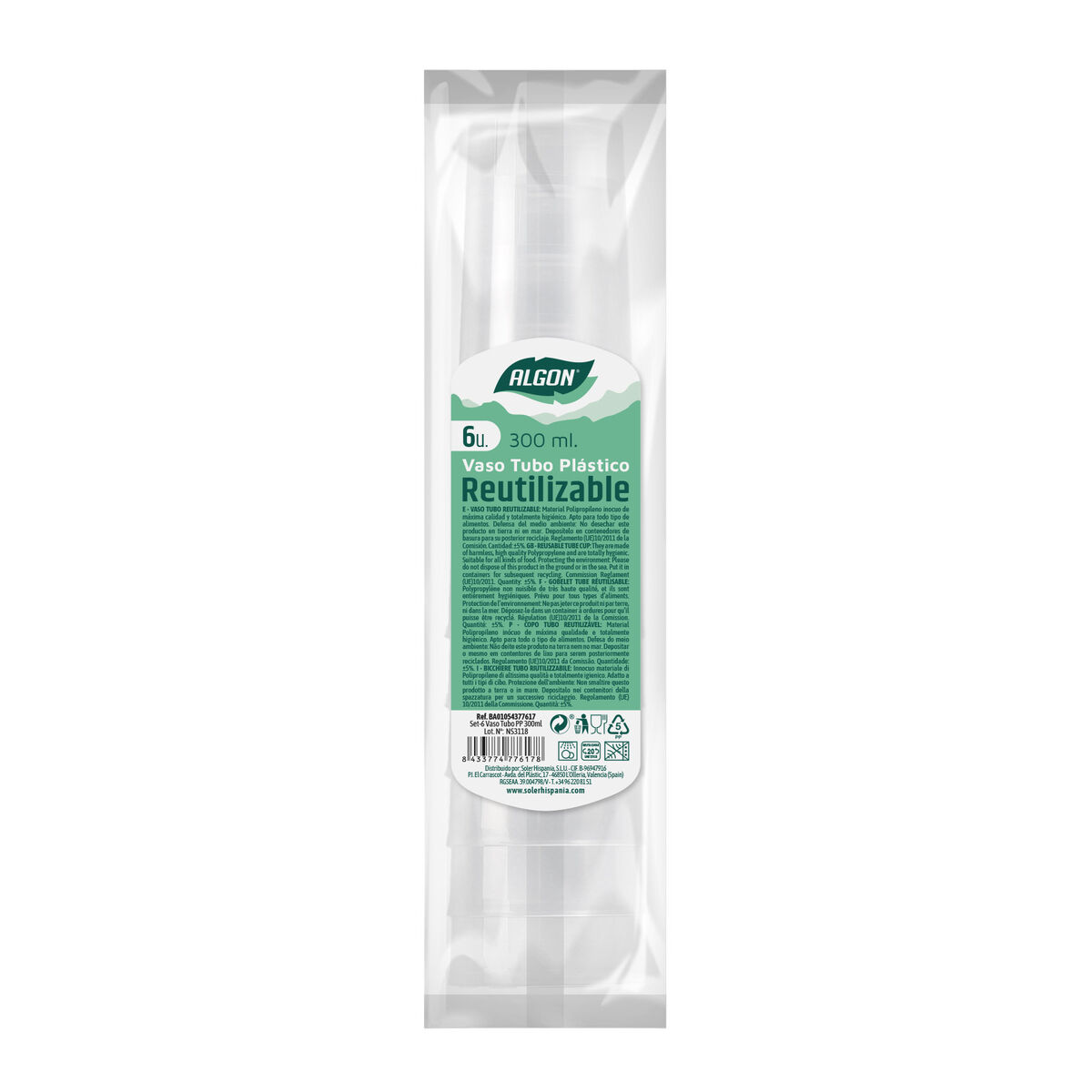 Set de vasos reutilizables Algon De tubo Transparente 6 Piezas 300 ml (70 unidades)