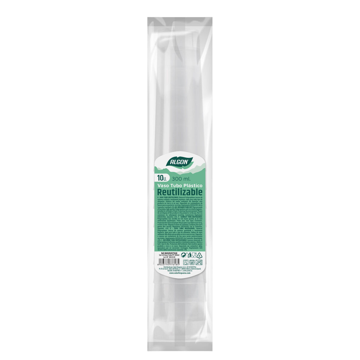 Set de vasos reutilizables Algon De tubo Transparente 10 Piezas 300 ml (50 Unidades)