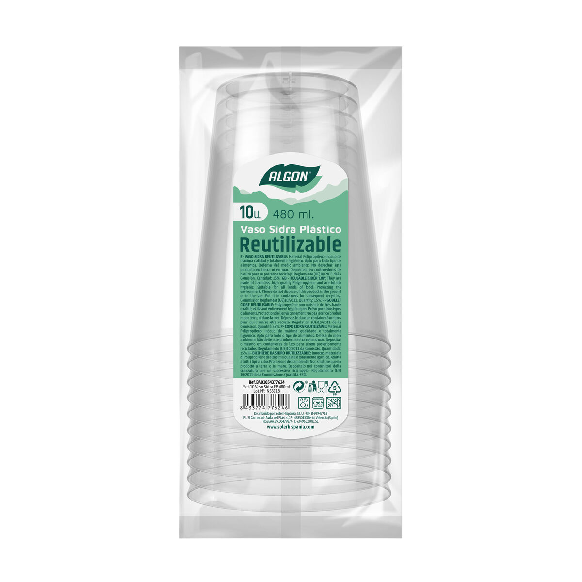 Set de vasos reutilizables Algon Sidra Transparente 10 Piezas 480 ml (20 Unidades)